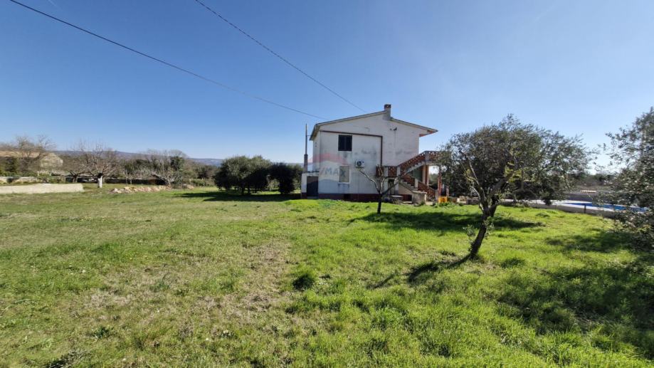 Okućnica kuće površine je 3000 m2 u potpunosti građevinske namjene, što daje mogućnost gradnje više kuća na ravnom terenu. Na zemljištu oko kuće nalaze se zasađene dugogodišnje masline, pomoćni objekt, šterna i garaža.