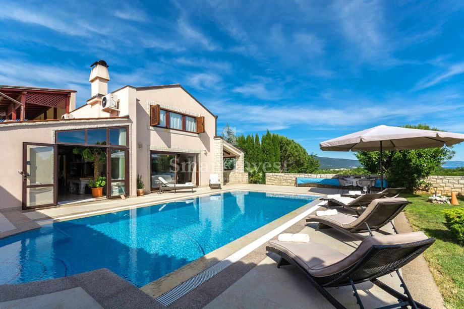 Ova vrhunska vila je u potpunoj harmoniji i simfoniji s okolišem i prirodnim ljepotama divnog krajolika, odiše prvoklasnom elegancijom te jedinstvenim eksterijerom i interijerom u spoju kamena i drva.