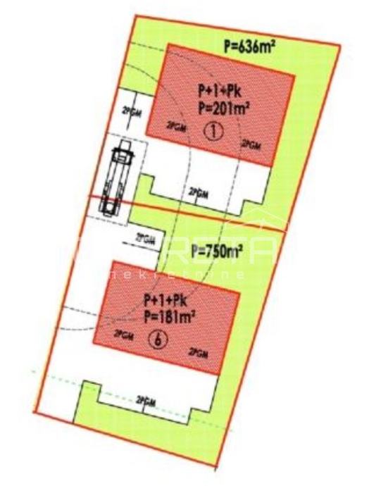 Prodaje se građevinsko zemljište površine 636 m2 dimenzije 25m x 25m u zoni mješovite namjene (oznaka M). Mogućnost gradnje cca 400 m2 neto stambenog prostora - 4 stana ili obiteljske kuće.