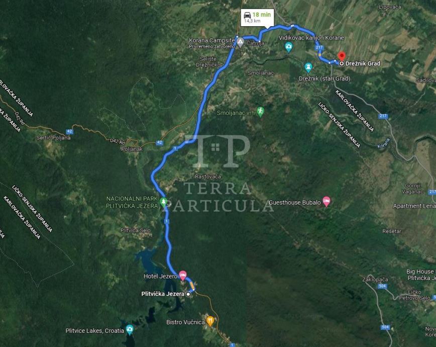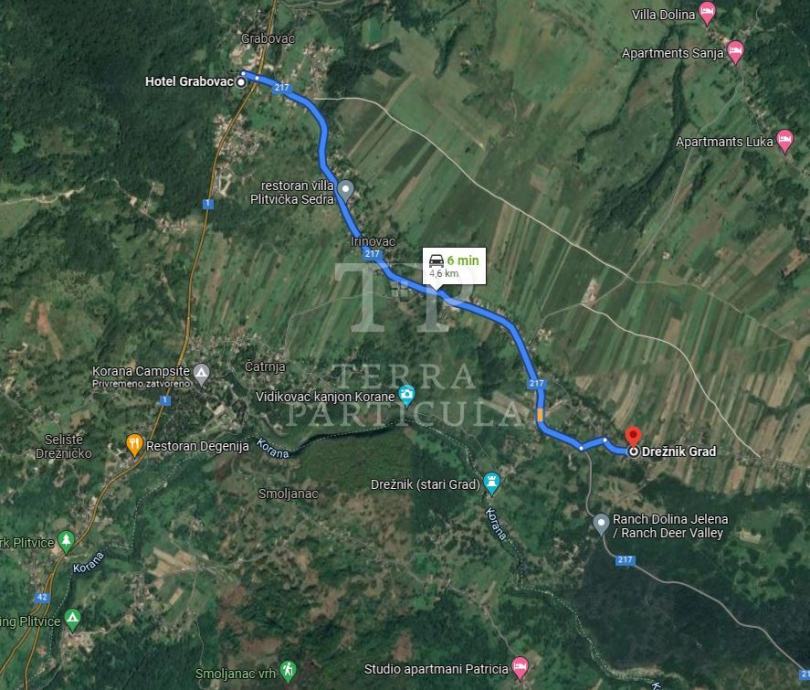Na prodaju građevinsko zemljište površine 4.826 m² na kojem je na temelju građevinske dozvole 1990-te započeta gradnja poslovno-stambenog objekta (cca 400 m²). Zemljište se nalazi u blizini kampa Grabovac i Plitvičkih Jezera. Tlocrti, presjek i pročelja objekta kao i njegova mikro i makro pozicija priloženi su oglasu. Za detaljne informacija na raspolaganju je vlasnik nekretnine na 098 968 46 92.