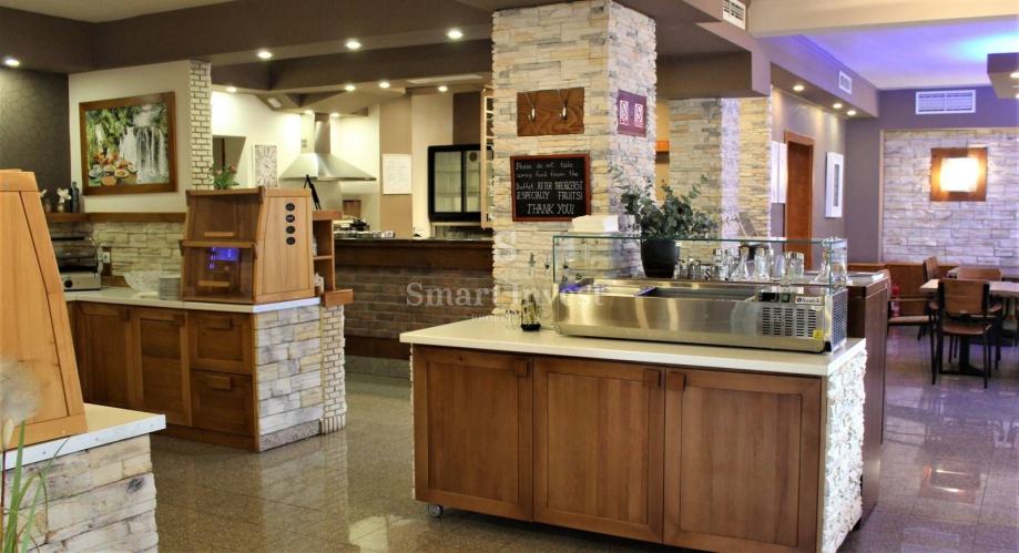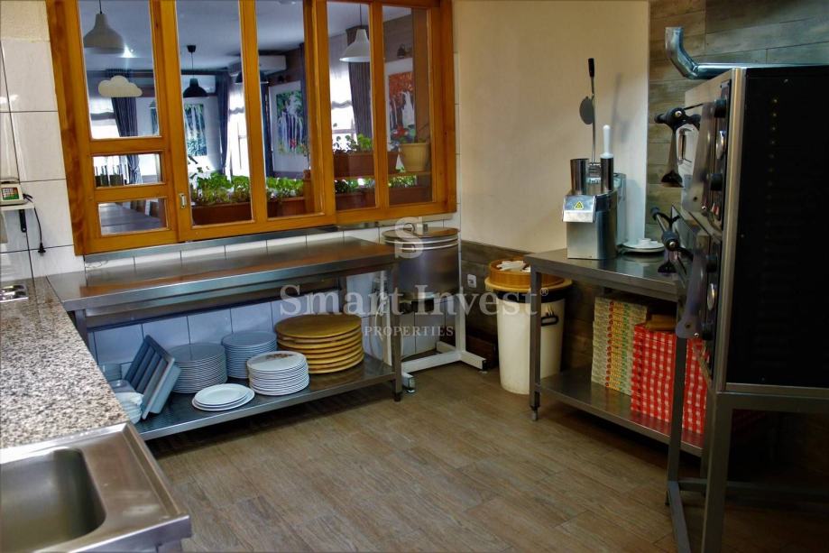 Objekt ima: Restoran sa 60 sjedećih mjesta unutra, 56 sjedećih mjesta na dvije terase vani, pizzeriju od cca 20 m2 te pečenjaru.