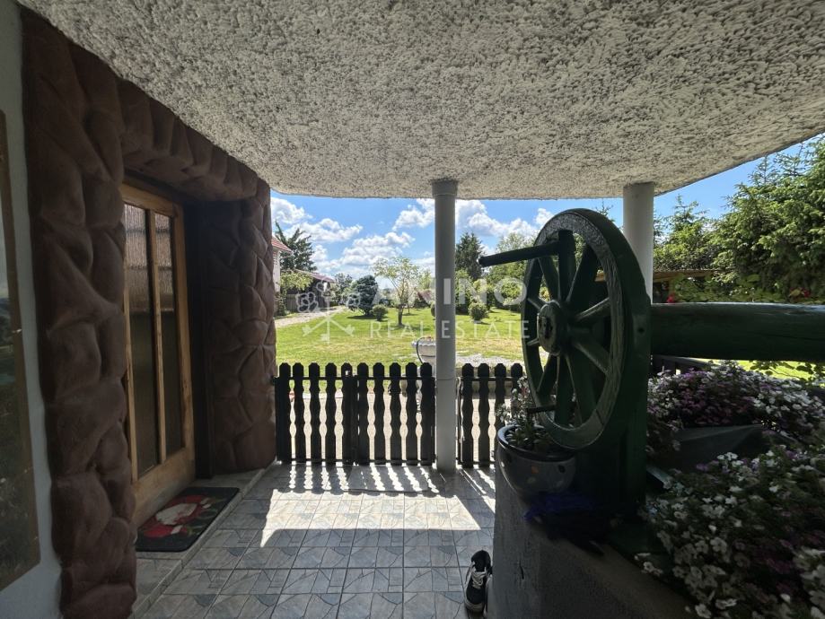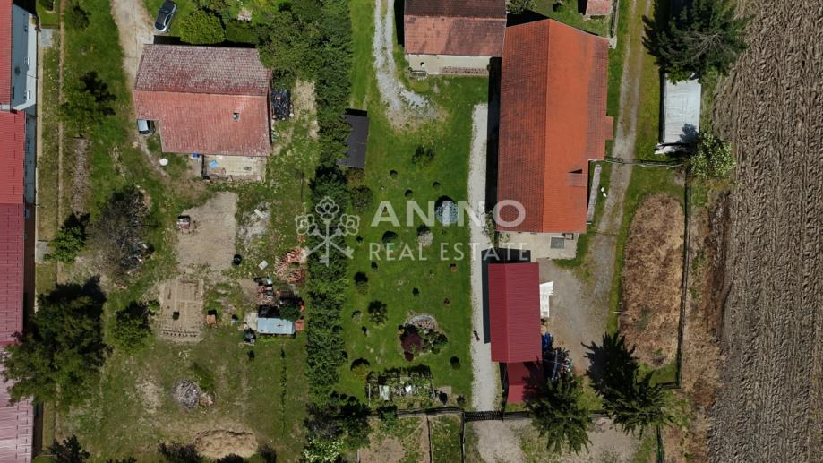 Na imanju se nalazi samostojeća kuća površine oko 200 m², građena 1962. godine, s uporabnom dozvolom. Kuća se sastoji od dvije etaže i potkrovlja, s tlocrtom površinom 120 m². Opremljena je plinskim etažnim grijanjem i centralnim grijanjem na drva, a ugrađena je PVC stolarija, postavljen je alarmni sustav, te postoji vlastiti bunar. Kuća ima priključak za vodovod (trenutno nije spojen u kuću), struju i septičku jamu. Krovište i prozori su obnovljeni prije 20 godina, a kuća ima i terasu s pogledom na imanje.
