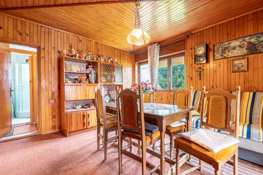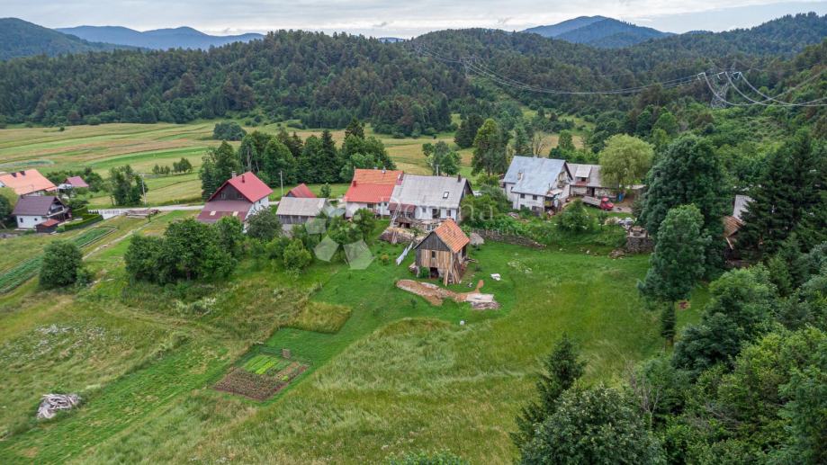 Rijetko na tržištu imamo ovako veliko imanje. Goranska kuća sa kamenim ukopanim podrumom i prizemljem ima ogromne prostorije. Useljiva je i održavana za nekadašnje standarde života na selu. Uz nju je više gospodarskih održavanih zgrada za uzgoj životinja, odlaganje ljetine, te za alat.