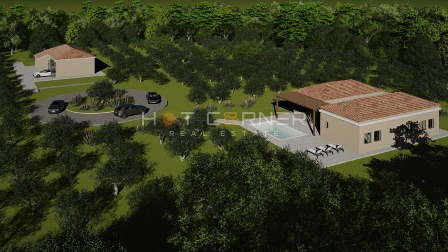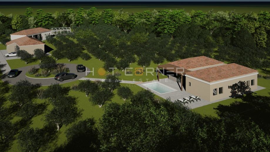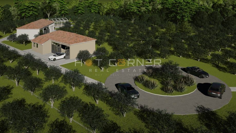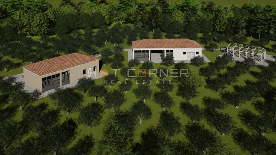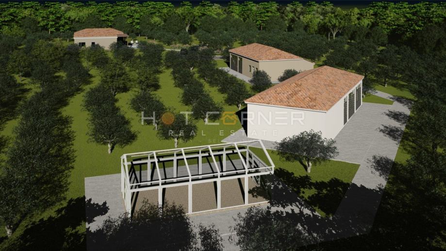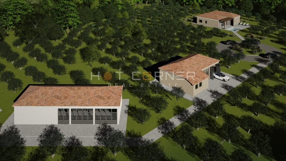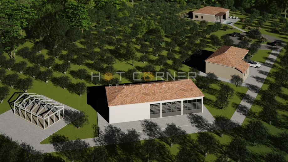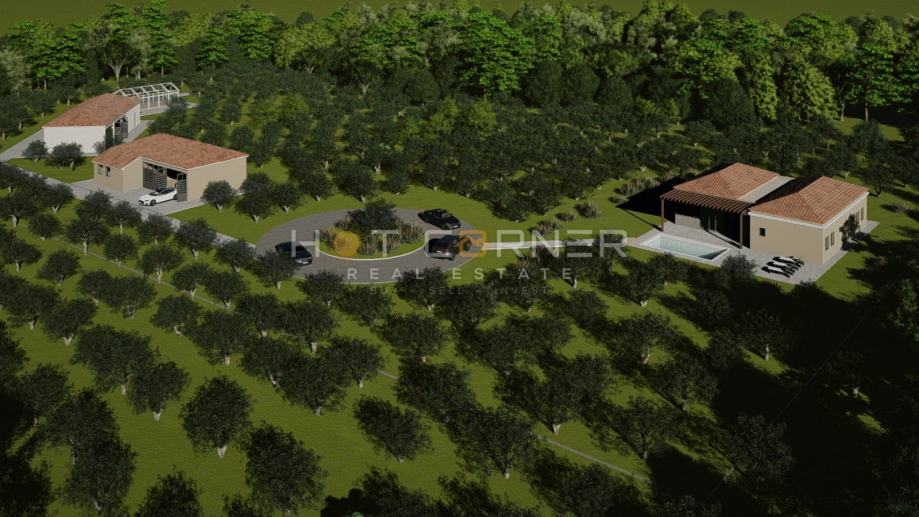 U ponudi raskošno imanje u okolici Barbana 550m2 na površini zemljšta od 15.000m2. U naravi je sklop stambenih i gospodarskih zgrada za vlastite potrebe i turizam. U nastavku predviđene faze gradnje: