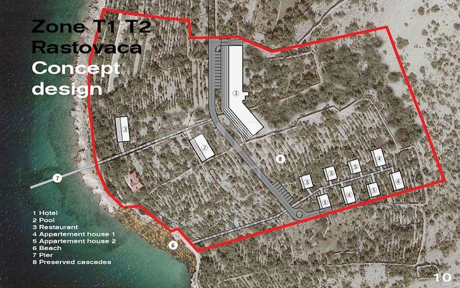 U izdvojenoj turističkoj zoni T1 i T2 koja je površine 38.000m2 nudimo 3 najbolje ključne parcele, ukupne površine 14.300m2.