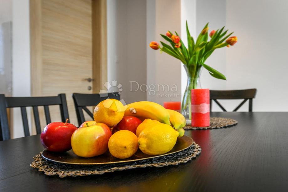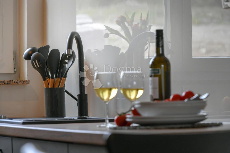 Na prvom katu nalazi se dnevni dio s moderno opremljenom kuhinjom, prostranim dnevnim boravkom te elegantnom master spavaćom sobom i kupaonicom. Ovaj kat pruža udobnost i funkcionalnost za cjelokupno iskustvo ugodnog boravka.