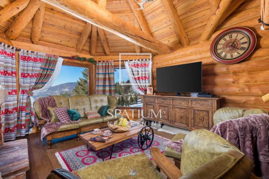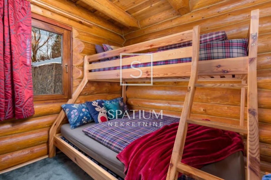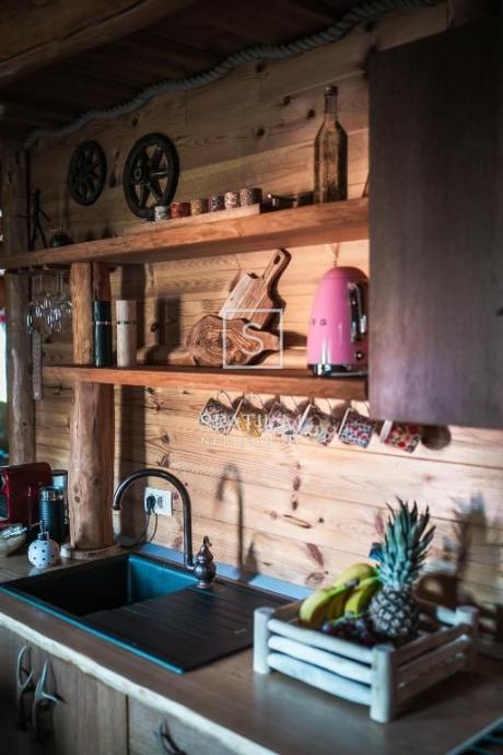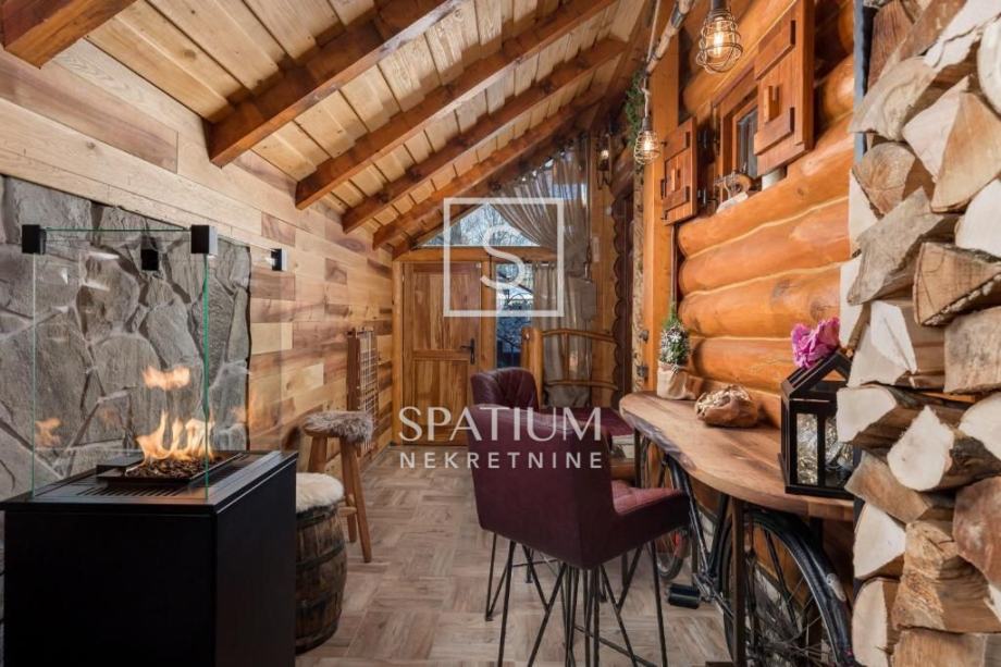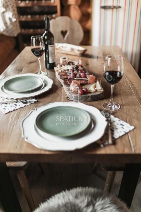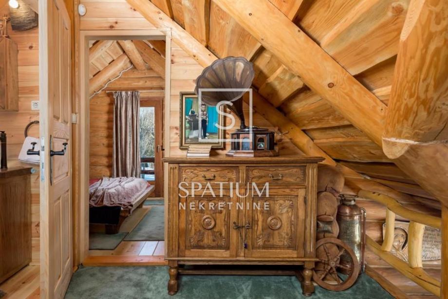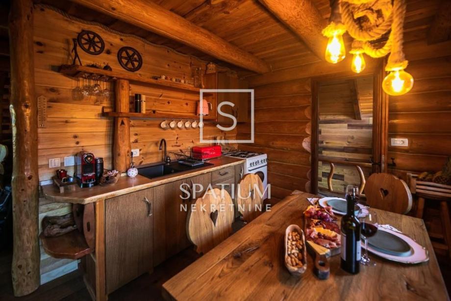 Kuća od prirodnog drva, potpuno namještena i uređena s posebnom pažnjom, sastoji se od kuhinje s blagovaonom, komforne dnevne sobe s kaminom, dvije spavaće sobe, kupaone, toaleta, galerije i balkona. Skladan spoj tradicije i modernog stila. Oprema uključuje podno grijanje i kamin na drva. Nekretnina redovno i pažljivo održavana.