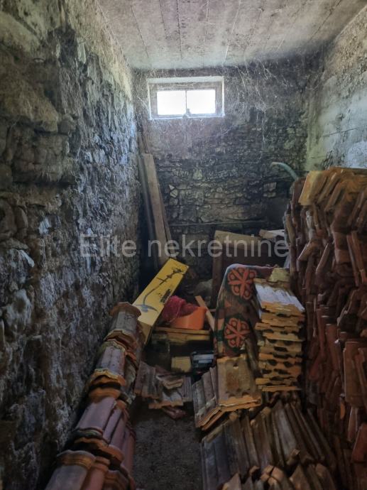 Na prizemlju se nalazi stan dvosobni s dnevnim, jedne drvene stube vode u potkrovlje a druge u suteren.