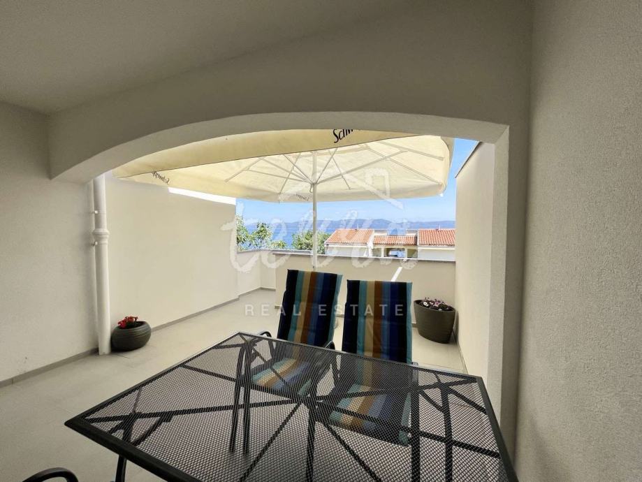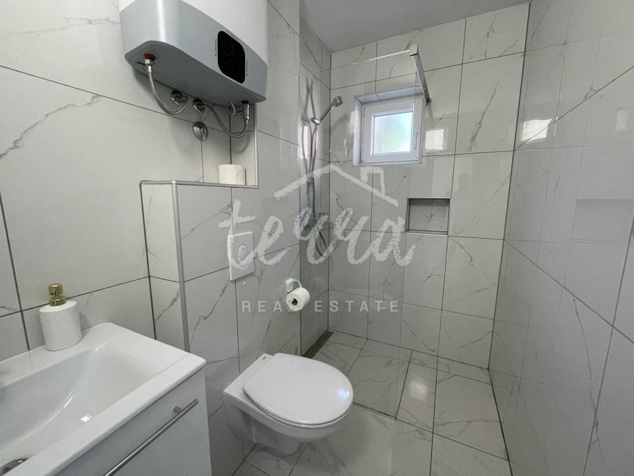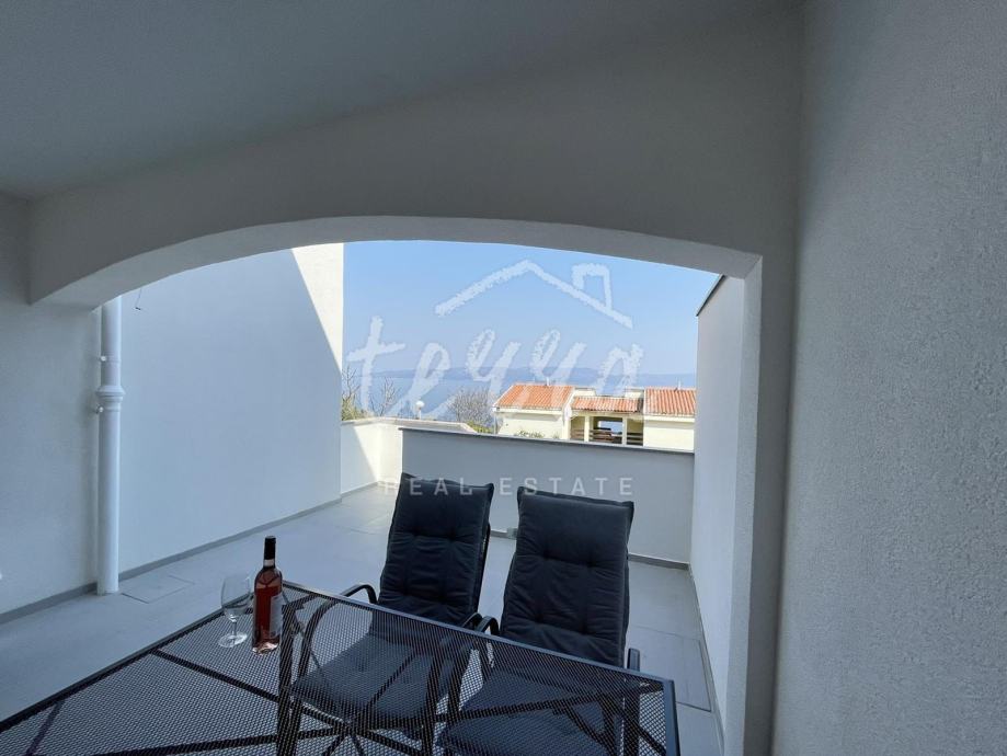 Posebna prednost ove nekretnine je prostrana terasa od 19 četvornih metara sa koje se pruža pogled na more, te zajedničko korištenje vrta, idealno za opuštanje i boravak na svježem zraku.
