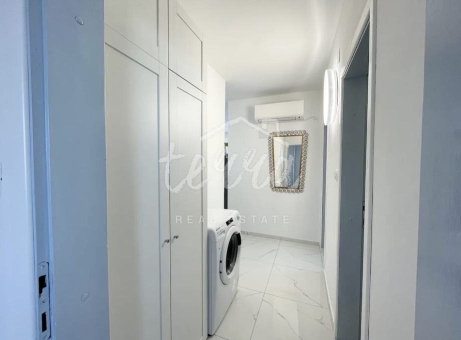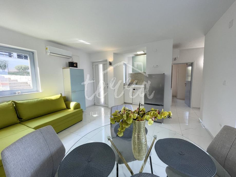 Na mirnoj i atraktivnoj lokaciji udaljen svega par minuta hoda do mora i prekrasnih plaža, prodaje se ovaj lijepo održavan stan.