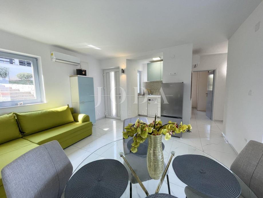Posebna prednost ove nekretnine je prostrana terasa od 19 četvornih metara sa koje se pruža pogled na more, te zajedničko korištenje vrta, idealno za opuštanje i boravak na svježem zraku.