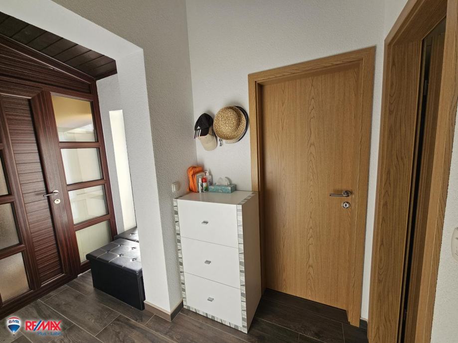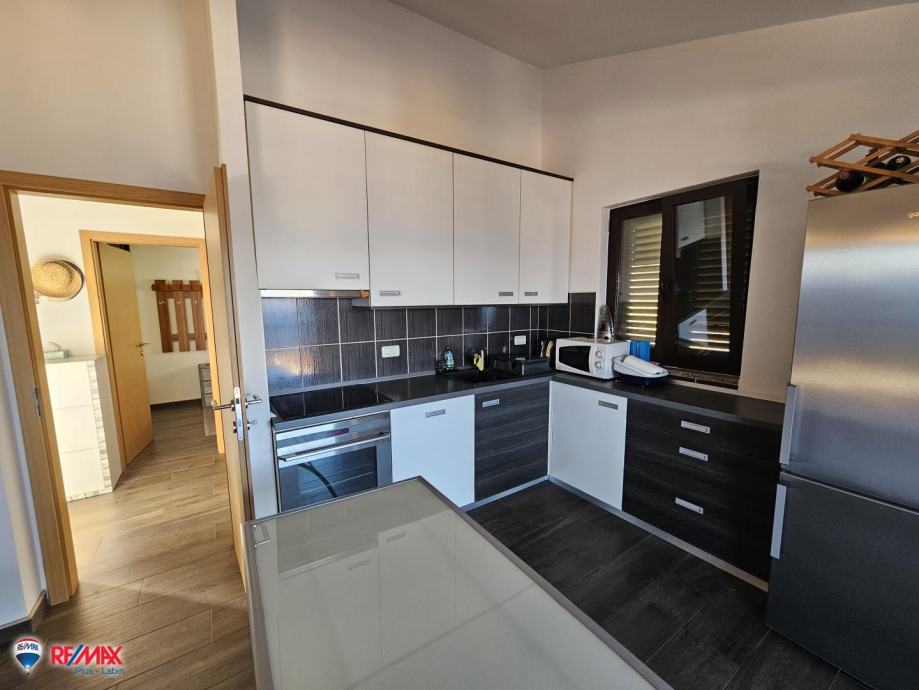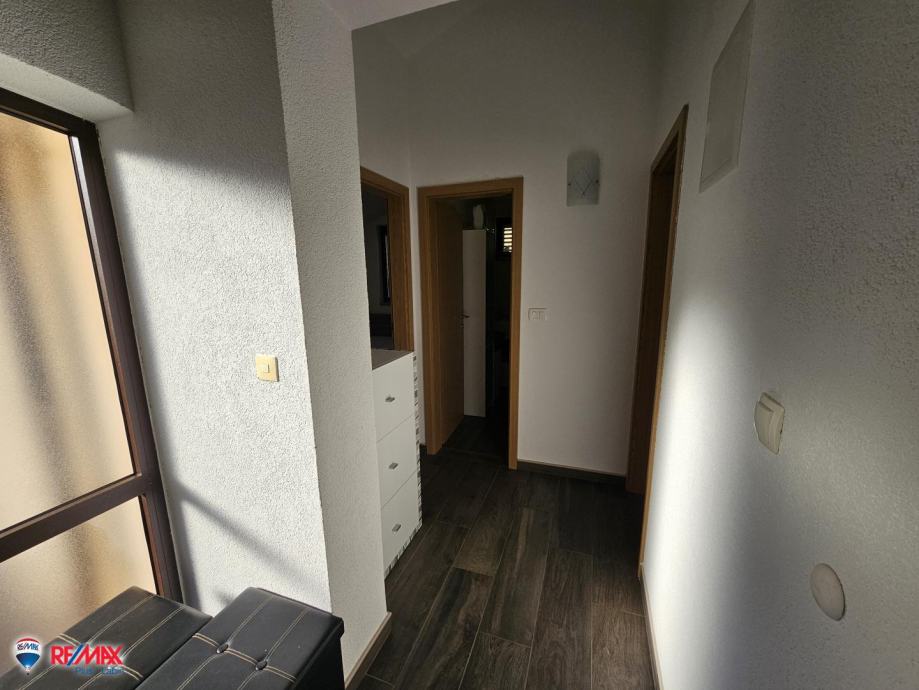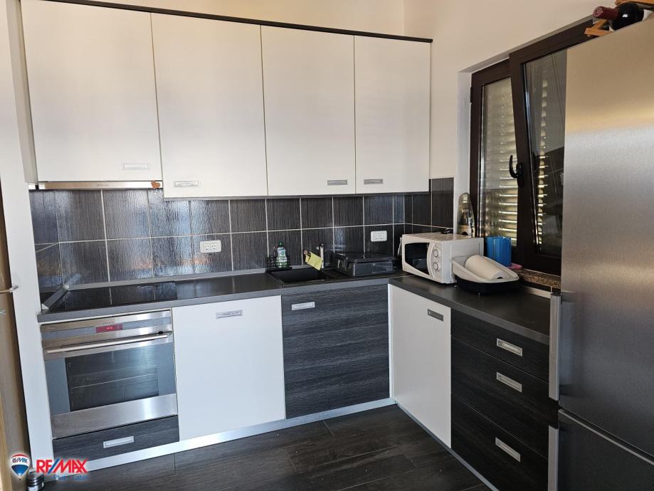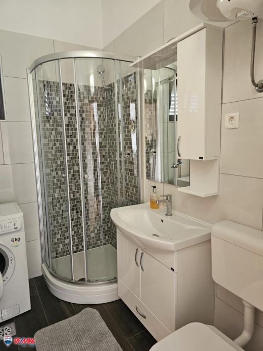 Apartman je u cjelosti renoviran, namješten i uređen.Sastoji se od jedne spavaće sobe, kupatila, predsoblja, te kuhinje sa dnevnim boravkom i blagovaonom iz koje se prisupa na lijepu ostakljenu i komfornu vanjsku terasu sa pogledom na more koji zaista oduzima dah.