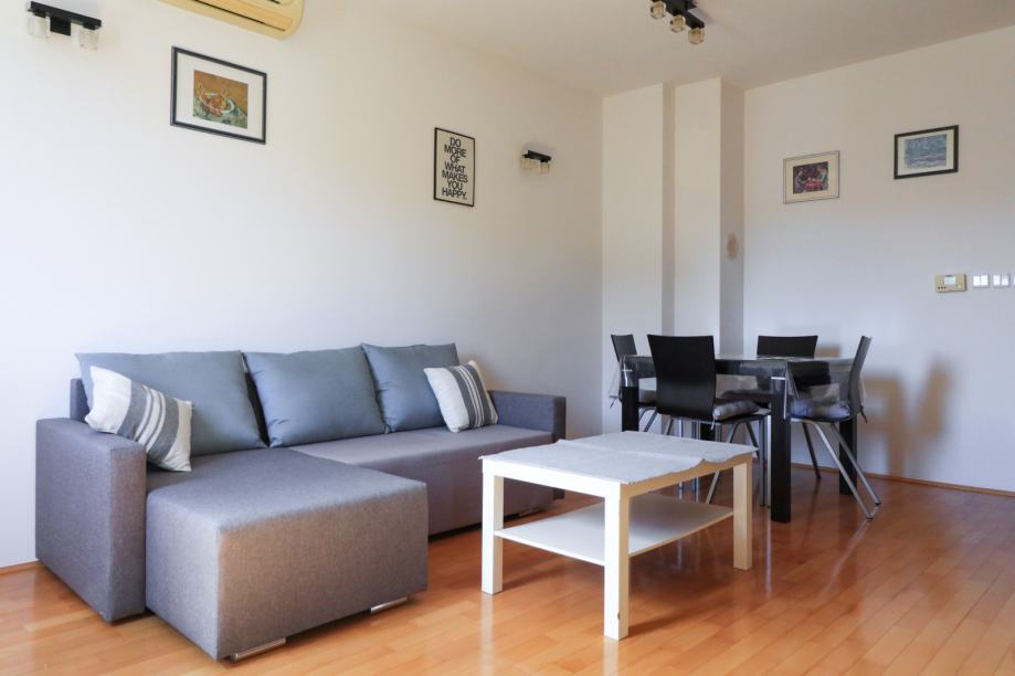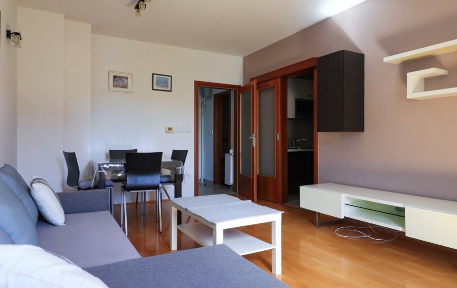 Iznajmljuje se u potpunosti opremljen 2-soban stan s GARAŽOM, u kvalitetnoj i dobro održavanoj stambenoj zgradi izgrađenoj 2008. god. na Ravnicama.