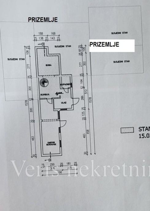 Prizemlje: dvije sobe, kuhinja i kupaona - neto 48 m2