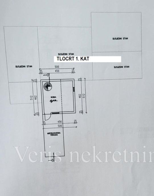1. Kat: 1 soba neto 21 m2 + nenatkrivena terasa