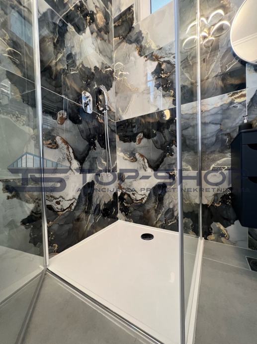 Stan se sastoji od open space dnevnog boravka s blagovaonom i kuhinjom. Kuhinja je opremljena svim potrebnim aparatima, uključujući perilicu posuđa, što pridonosi praktičnosti i udobnosti svakodnevnog života.