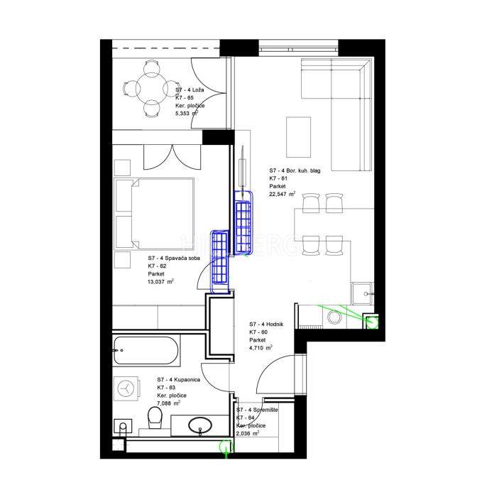 - dnevnog boravka s kuhinjom i blagovaonicom - izlaz na lođu
