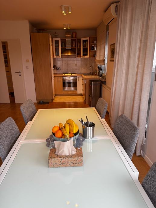 - Dnevni boravak s kuhinjom opremljenom SMEG aparatima (stolić u dnevnom boravku je privremeno uklonjen zbog malene djece)