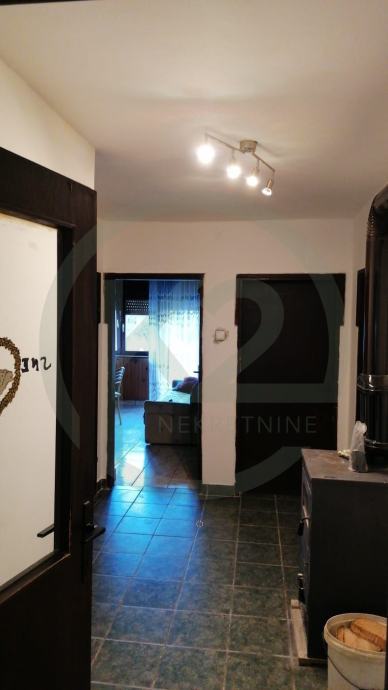 Na 1. katu se nalazi stambeni prostor sa ulaznim hodnikom u kojem se nalazi centralna peć na drva za zagrijavanje cijelog kata, kuhinja, ostava + 3 sobe, 2 balkona i lođa.