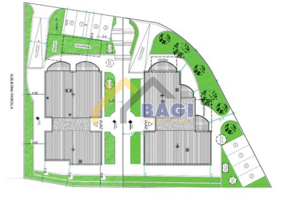 Osigurano je jedno otvoreno parkirno mjesto (17,80 m2) i 1 garažno mjesto.