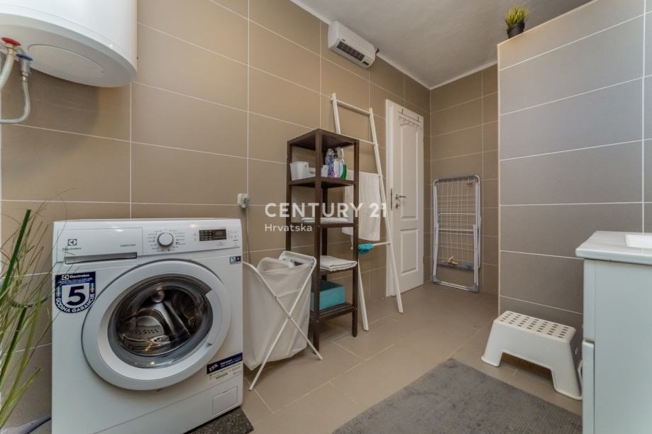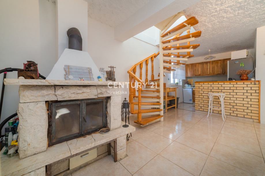 U prizemlju se nalazi inverter klima koja grije i hladi prostor te dodatno i kamin te jedna klima u potkrovlju u hodniku.