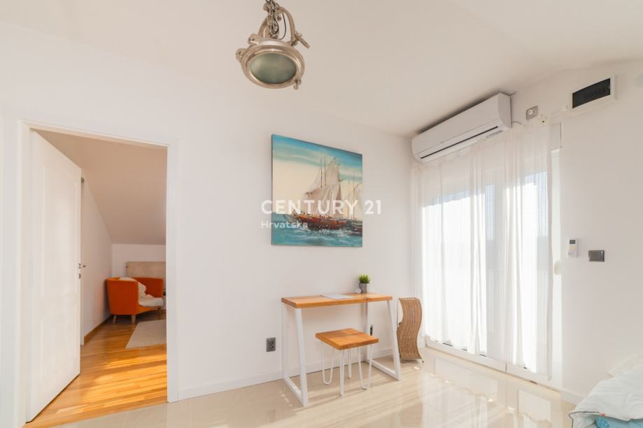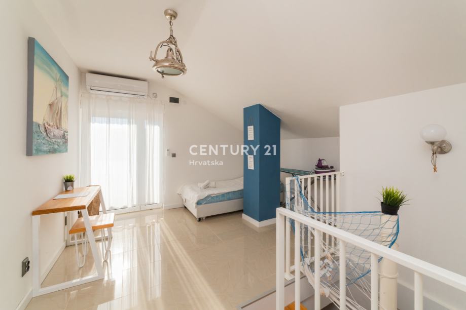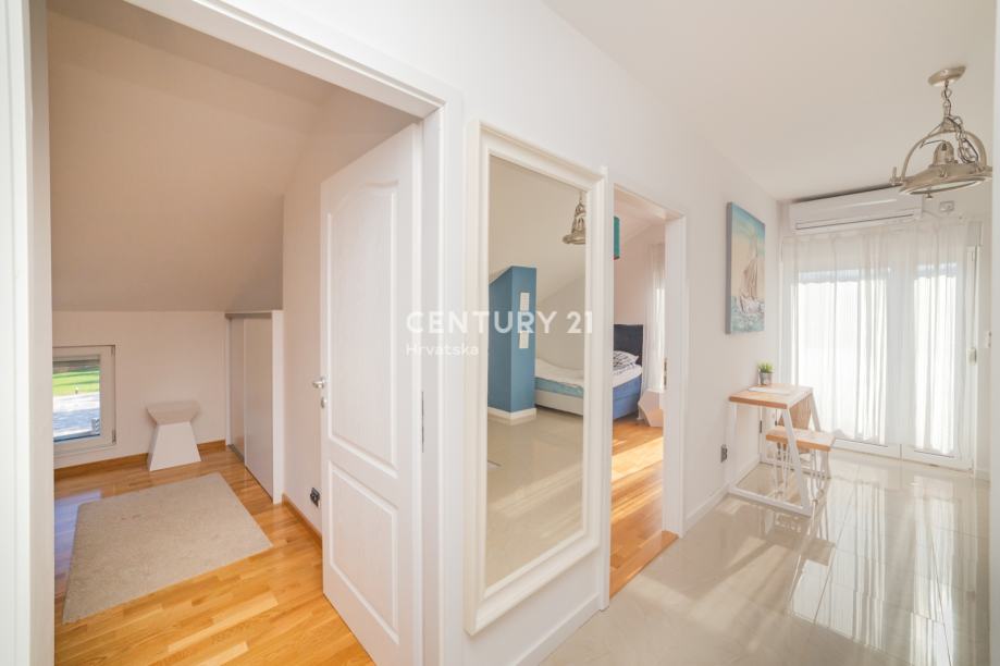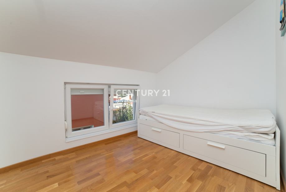 Potkrovlje ima 66,60 m2 zatvorenog prostora u kojem su se smjestile 3 zasebne spavaće sobe, hodnika i kupaonice, te balkona površine cca 7 m2.