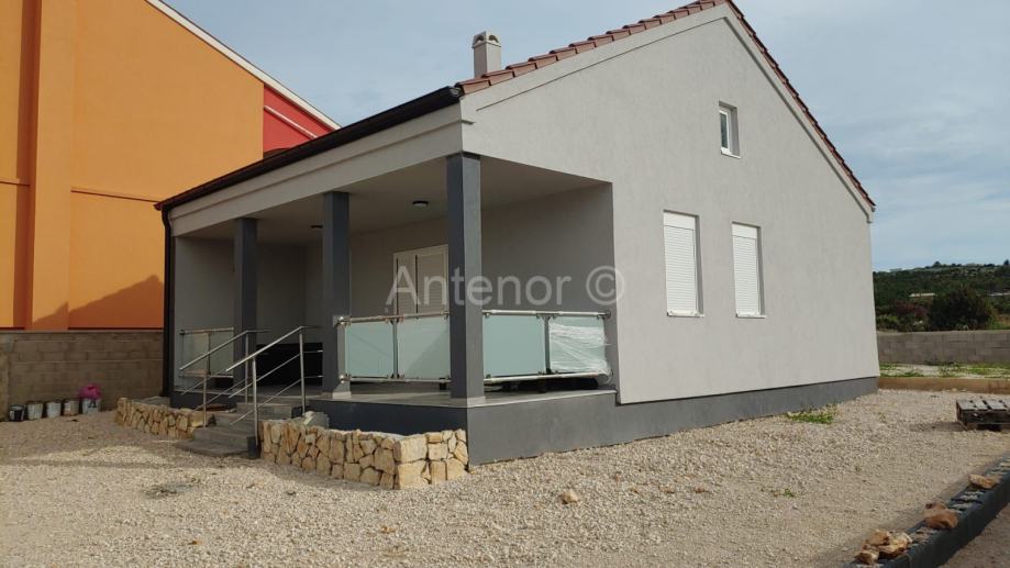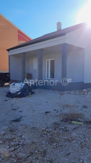 RAŽANAC - prodaje se montažna kuća u izgradnji udaljena 500 m od mora. Kuća je smještena na parceli površine 510 m2, a sastoji se od 2 spavaće sobe, kupaonice, kuhinje, dnevnog boravka, blagovaonice i natkrivene terase.