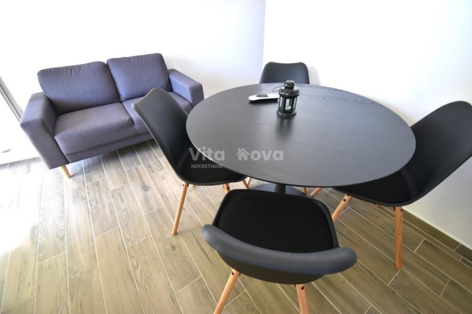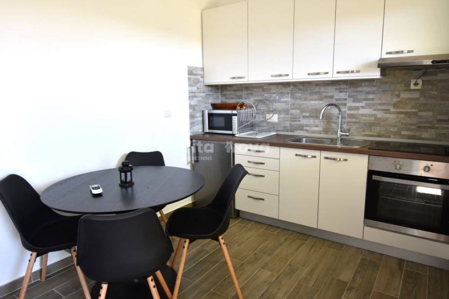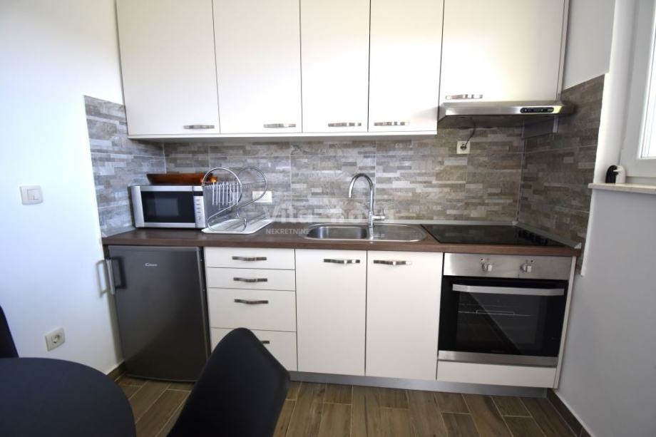 Iznajmljuje se na dulji period uređeni stan u prizemlju privatne kuće, s pogledom na more. Stan ima kuhinju i blagovaonicu, balkon, spavaću sobu i kupaonicu. Stanu pripada i jedno parkirno mjesto u dvorištu.