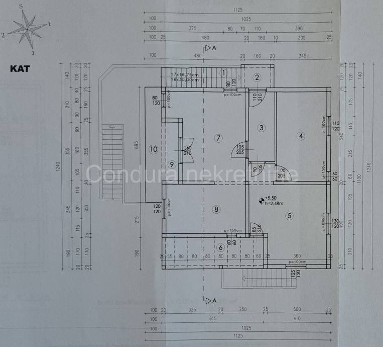 - drugi apartman ukupne neto površine 40,46 m2 sastoji se od: dnevnog boravka s kuhinjom i blagovaonicom, pretprostora, toaleta, kupaonice, spavaće sobe, lođe i balkona. Postoji mogućnost uređenja tavanskog dijela te dobivanja dodatne prostorije povezane s apartmanom.