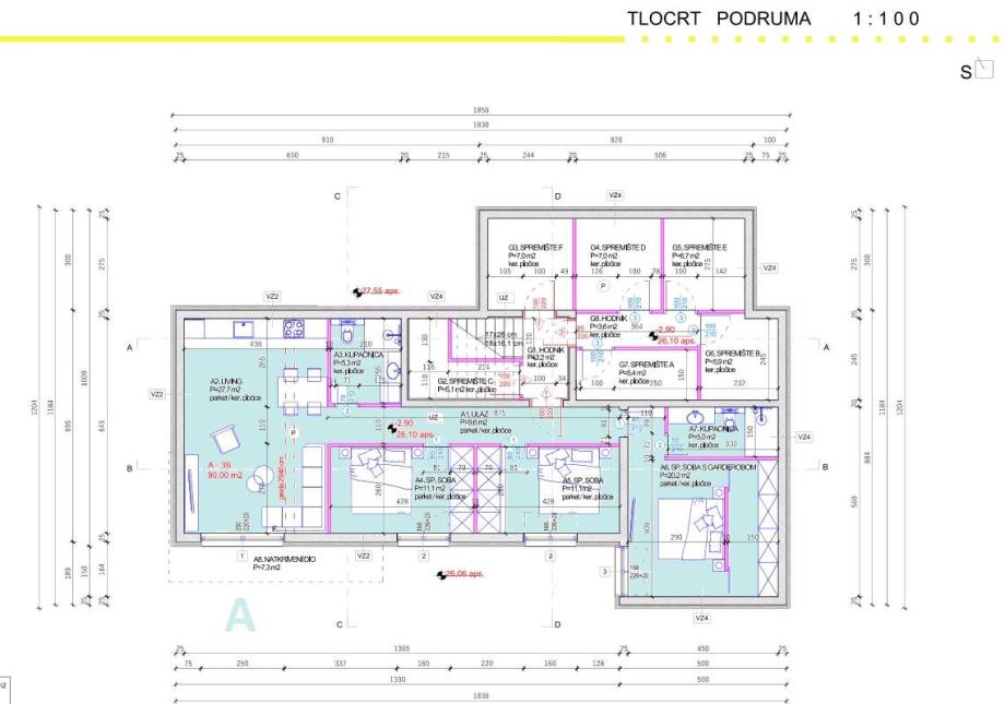 STAN A – u prizemlju zgrade, ima korisnu površinu od 95,40 m². Sastoji se od hodnika, tri spavaće sobe, dvije kupaonice, prostrane kuhinje s blagovaonicom i dnevnim boravkom iz kojih se izlazi na veliku nenatkrivenu terasu/sunčalište i bazen od 29,5 m². Stanu pripada dvorište od 140 m² te vanjsko parkirno mjesto od 25 m², dostatno za dva vozila te spremište od 5,30m2.