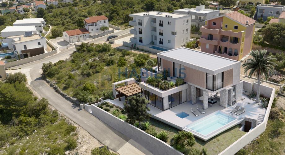 U prekrasnom malom mjestu Ražanj, na jako lijepoj lokaciji, 200 metara od mora, smjestit će se vila s bazenom (trenutno u izgradnji), na parceli od 687m2. Visoko kvalitetna nekretnina s prigušenom elegancijom, u mirnom i zelenom okruženju s otvorenim pogledom na more pružat će mogućnost za ugodan i opušten život i odmor, te odličnu priliku u turističkom poslovanju kroz cijelu godinu. Objekt će biti izgrađen kao jedna stambena jedinica, ukupne neto površine 246,08m2, koja će se sastojati od prizemlja i kata, te od podruma gdje će se nalaziti tehničke prostorije.