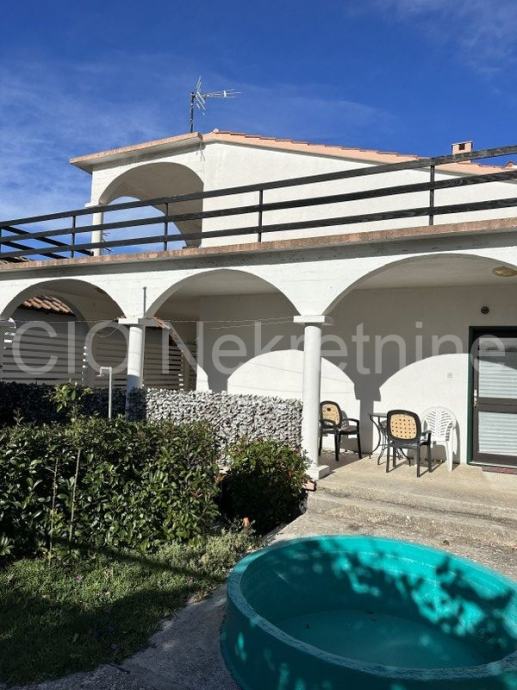 Ispred kuće je garaža od 50 m2 a pored nje se nalazi ljetna kuhinja sa vanjskim roštiljem.