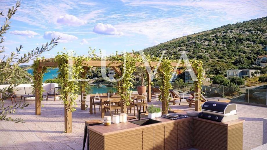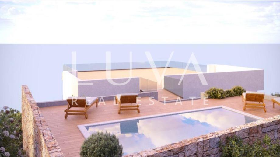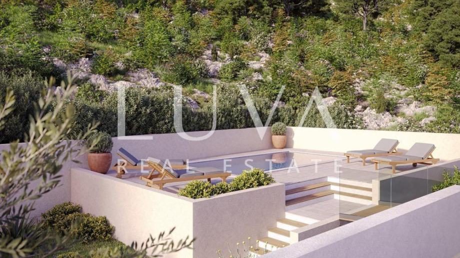 - Eksterijer uključuje veliku terasu s bazenom (6x4 m), idealno mjesto za opuštanje i uživanje u sunčanim danima uz zvuk valova.