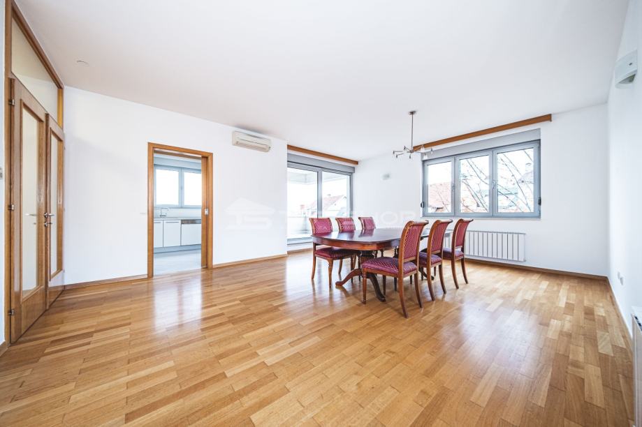 Rebro, Podvršje, ekskluzivan šesterosobni stan na dvije etaže (prvi i drugi kat) ukupne površine 260m2 sa četri natkrivena balkona, vrtom, garažnim mjestom i natkrivenim parkingom.