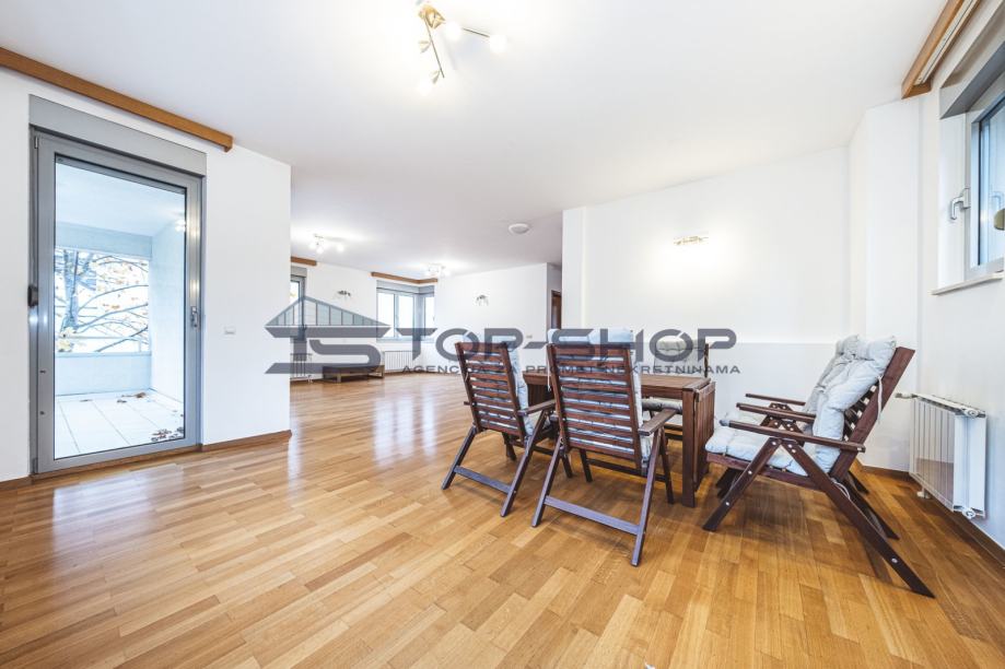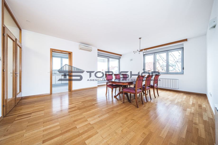 Rebro, Podvršje, ekskluzivan šesterosobni stan na dvije etaže (prvi i drugi kat) ukupne površine 260m2 sa četri natkrivena balkona, vrtom, garažnim mjestom i natkrivenim parkingom.