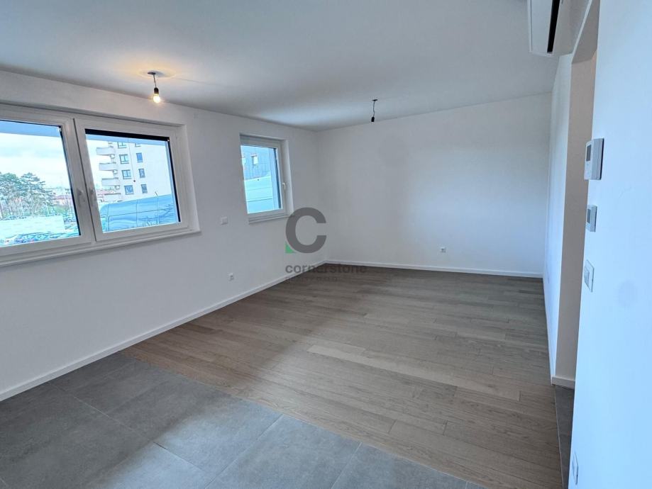 Garsonijera veličine 31,67 m2 nalazi se u prizemlju zgrade, a orijetirana je na blagi sjeveroistok. Sastoji se od ulaznog hodnika, kupanice s toaletom i velikog prostora koji je objedinjuje kuhinju, blagovaonicu i dnevni prostor/spavaći prostor.