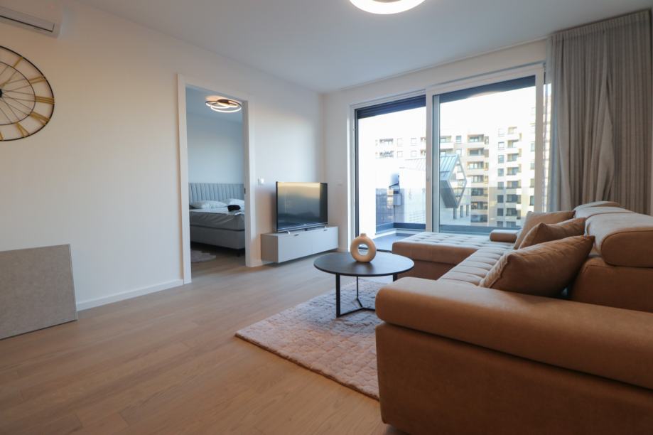 Iznajmljuje se moderan 2-soban stan na 4. katu nove stambene zgrade s liftom u Remetincu.