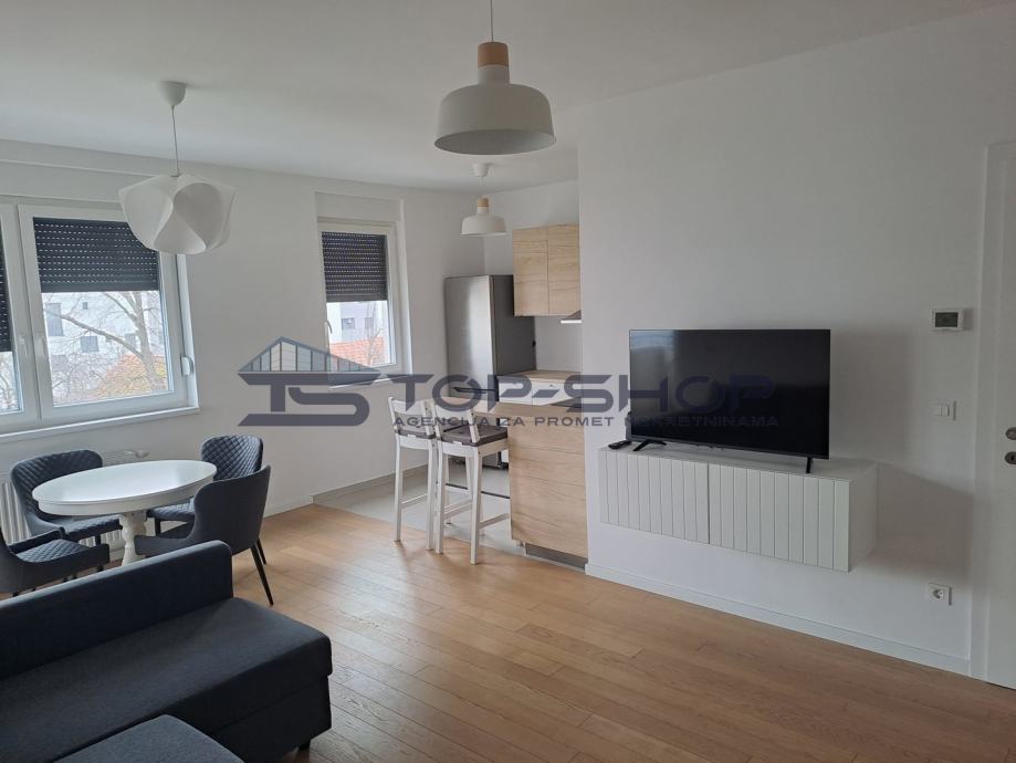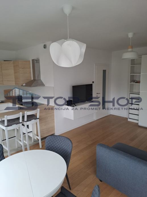 Iznajmljuje se moderan 2-sobni stan površine 51,07 m2, smješten na drugom katu zgrade, u Novom Zagrebu – Zapad, kvart Remetinec.