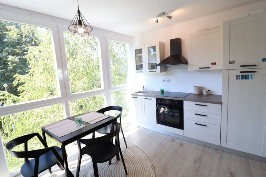 Novo-uređen dvosobni stan na trećem katu stambene zgrade u Remetinečkom gaju. Stan je potpuno renoviran početkom 2022. godine. Postavljeni novi podovi, nova stolarija, velika staklena stijena u dnevnom boravku s lijepim pogledom na zelenilo, nova kupaonica, protuprovalna vrata, klima uređaj i električni bojler.