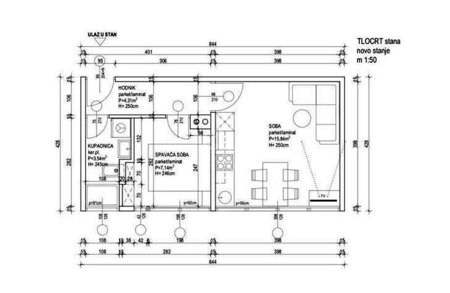 Nova izolacija (staklena vuna). Stan je nedavno (ljeto 2022.) namješten novim namještajem i opremljen novim uređajima.