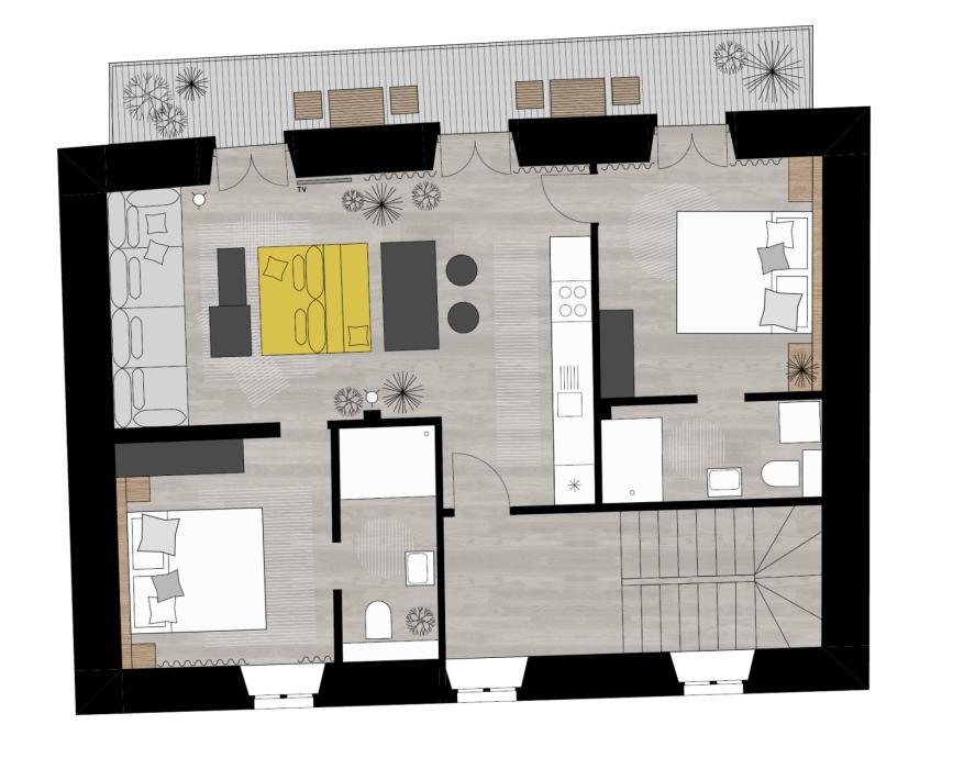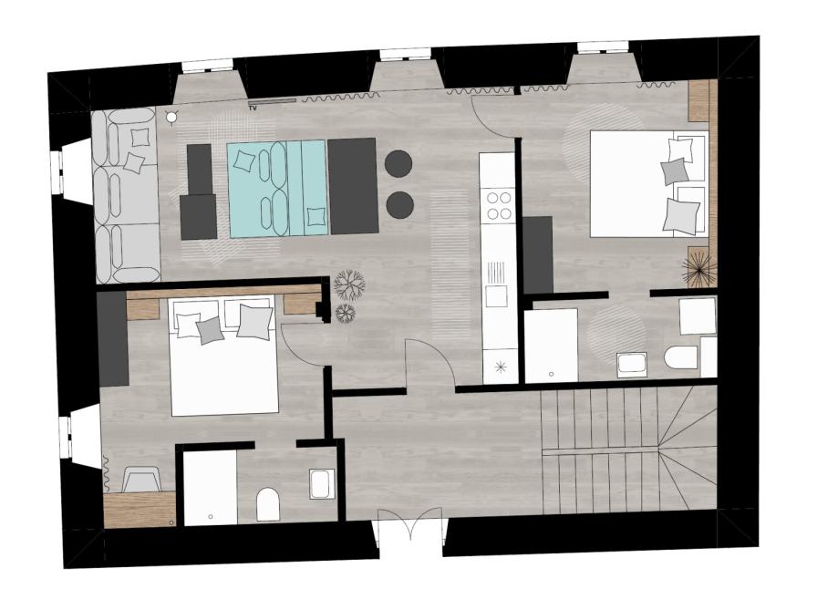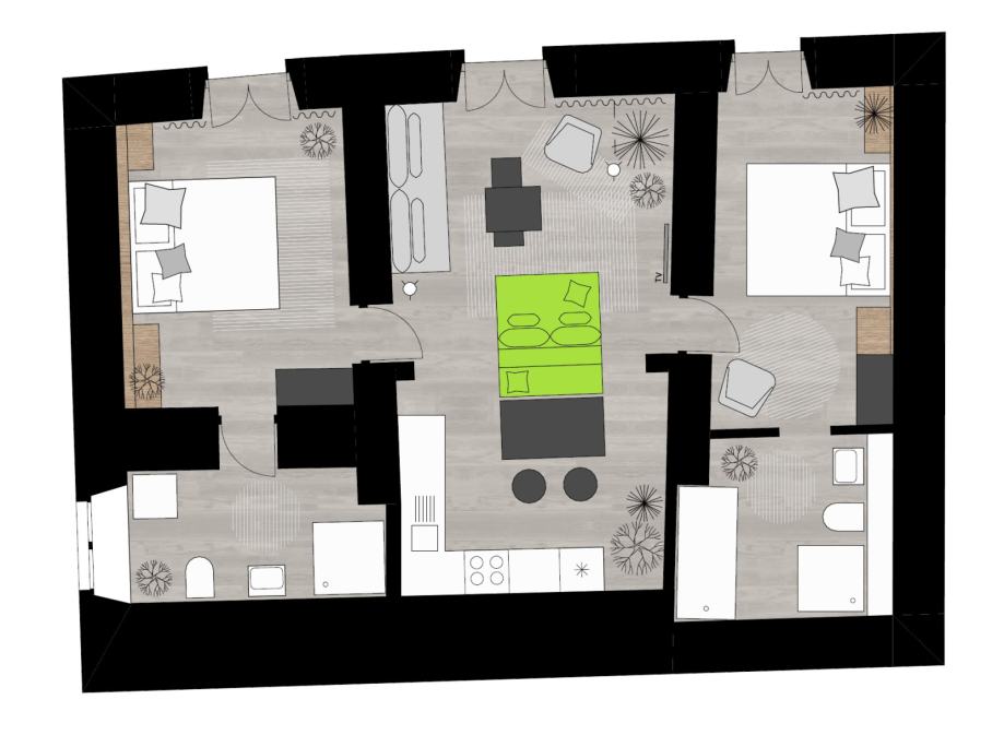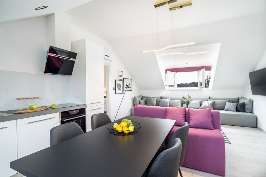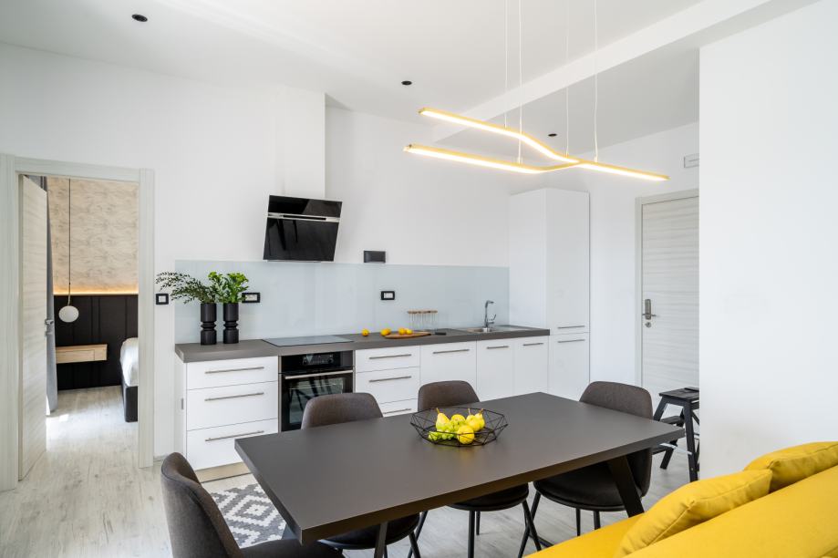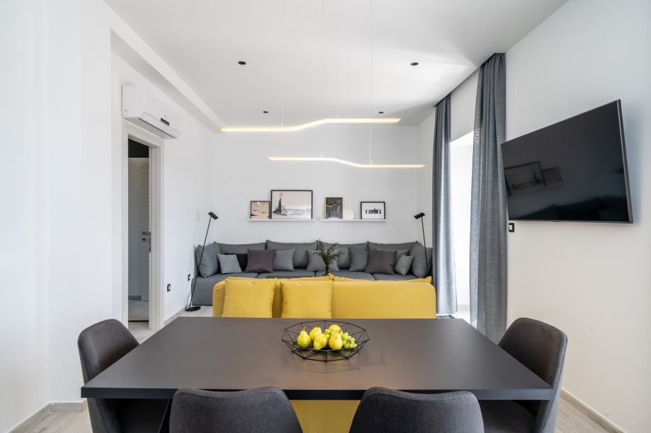 Moderni interijeri: Svaki apartman je dizajniran s pažnjom na suvremenu eleganciju, nudeći sve što vam je potrebno za ugodan boravak.