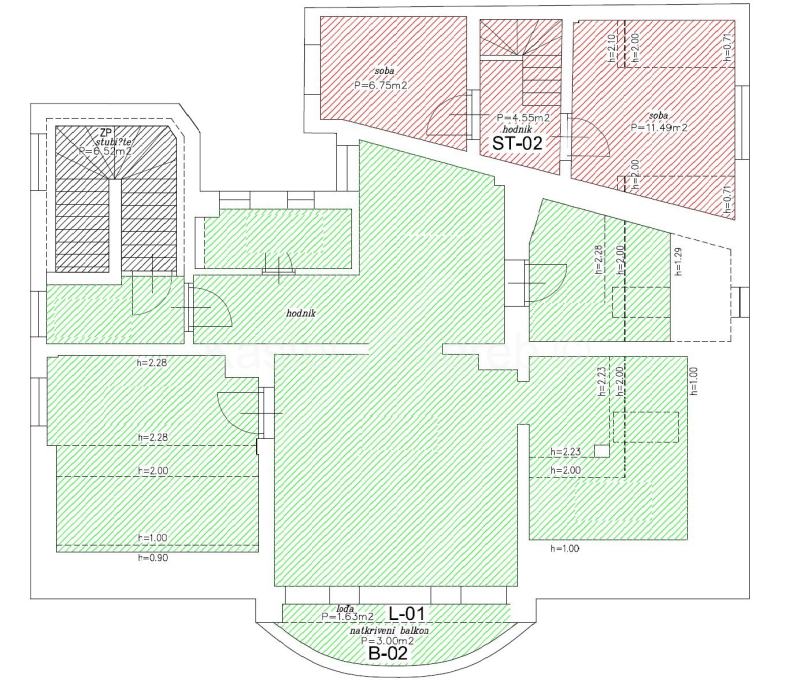 troetažni stan u tlocrtu oznake ST-02 u prizemlju, katu i potkrovlju zgrade koji se sastoji od kuhinje, tri sobe, dvije kupaonice i hodnika sa stubištem ukupne pov. 65,49 m2 te pripatka spremišta u podrumu zgrade pov. 5,83 m2 i