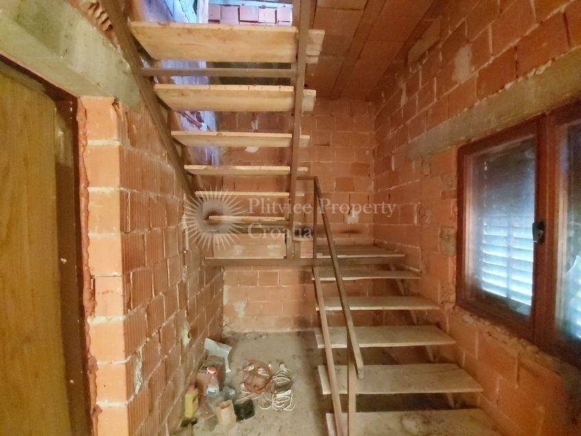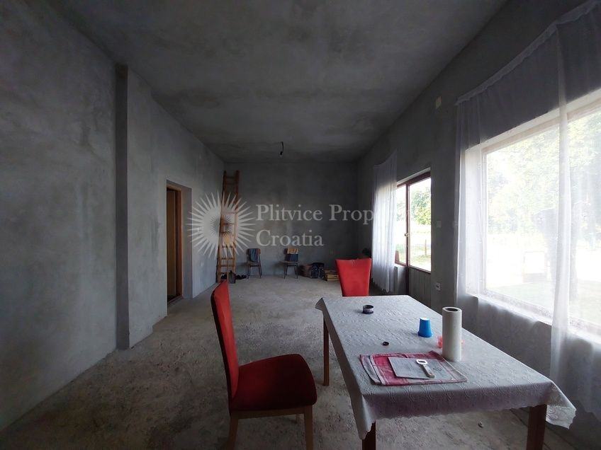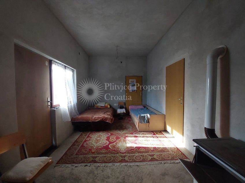 Ova nekretnina nudi uzbudljivu priliku za renoviranje s prostranim rasporedom i raznolikim mogućnostima dizajna. Kuća ima dva ulaza, što je čini prilagodljivom za različite konfiguracije i idealnom za one koji žele stvoriti personalizirani životni prostor.