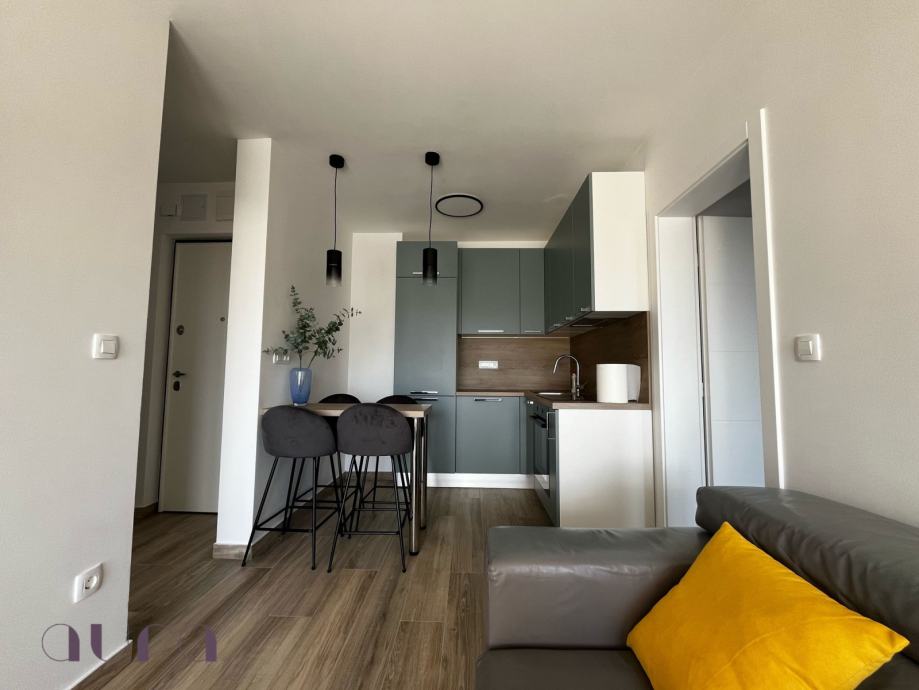 The floor plan of the apartment consists of two spacious and bright bedrooms, a modern living room connected to the dining room and kitchen, a bathroom with toilet and a small but very useful storage room. Each room is equipped with air conditioning, and the apartment is rented fully furnished - including all household appliances, dishes and small things that make everyday life easier. The rental price also includes free internet access, which is especially practical for students or those who work from home.