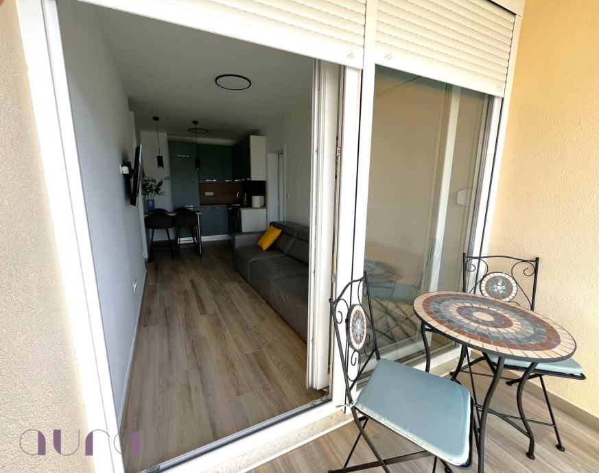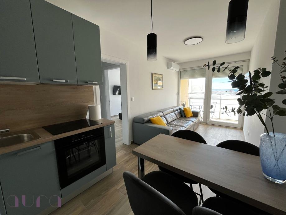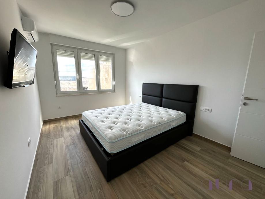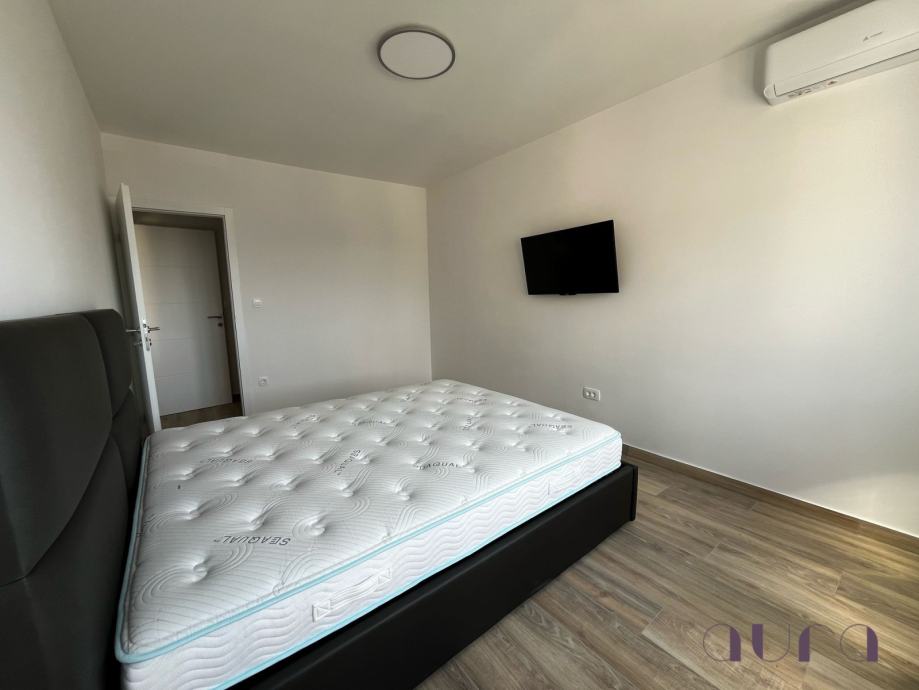 Tlocrt stana sastoji se od dvije prostrane i svijetle spavaće sobe, moderno uređenog dnevnog boravka koji je povezan s blagovaonicom i kuhinjom, kupaonice s toaletom te manje, ali vrlo korisne ostave. Svaka prostorija opremljena je klima uređajem, a stan se iznajmljuje potpuno opremljen – uključujući sve kućanske aparate, posuđe i sitnice koje svakodnevni život čine lakšim. U cijenu najma uključen je i besplatan priključak na internet, što je posebno praktično za studente ili one koji rade od kuće.