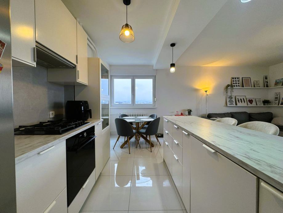 Na 8. katu nebodera nalazi se ovaj iznimno svijetao i potpuno renoviran 2,5-sobni stan ukupne površine 65.88m2, osmišljen kao ugodan, funkcionalan i odmah useljiv dom.