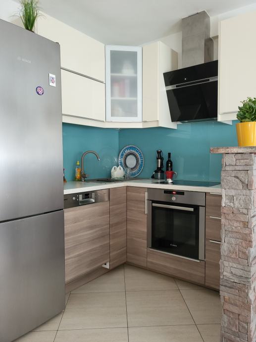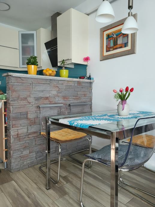 Prije nekoliko godina stan je kompletnom renovacijom iz 2-sobnog prenamijenjen u jako funkcionalni 3-sobni. Posebnost uređenja je da su svi vanjski zidovi stana iznutra obloženi kamenom vunom i knaufom, ugrađeno je električno podno grijanje u cijelom stanu, dok se hlađenje istog obavlja preko 2 inverter klima uređaja, također stan je opremljen i videonadzorom.