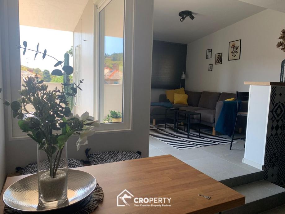The apartment is oriented east–west, with a south-facing loggia offering an open view of Marjan. Thanks to its excellent orientation, the apartment is very bright, airy, and pleasant for everyday living.