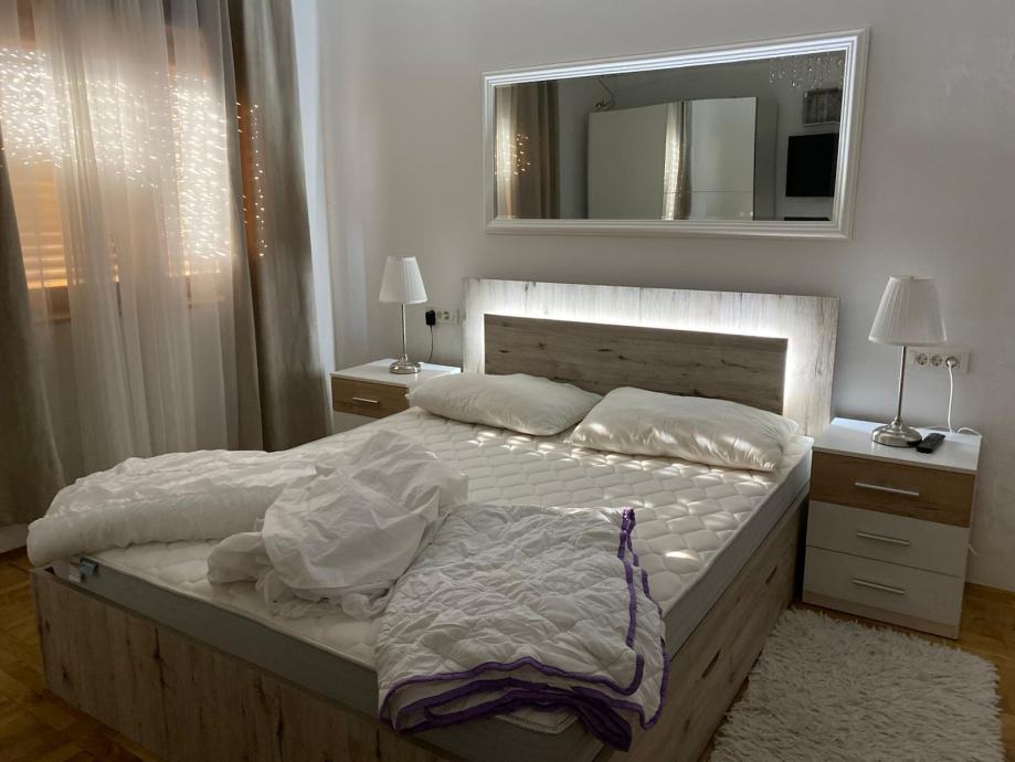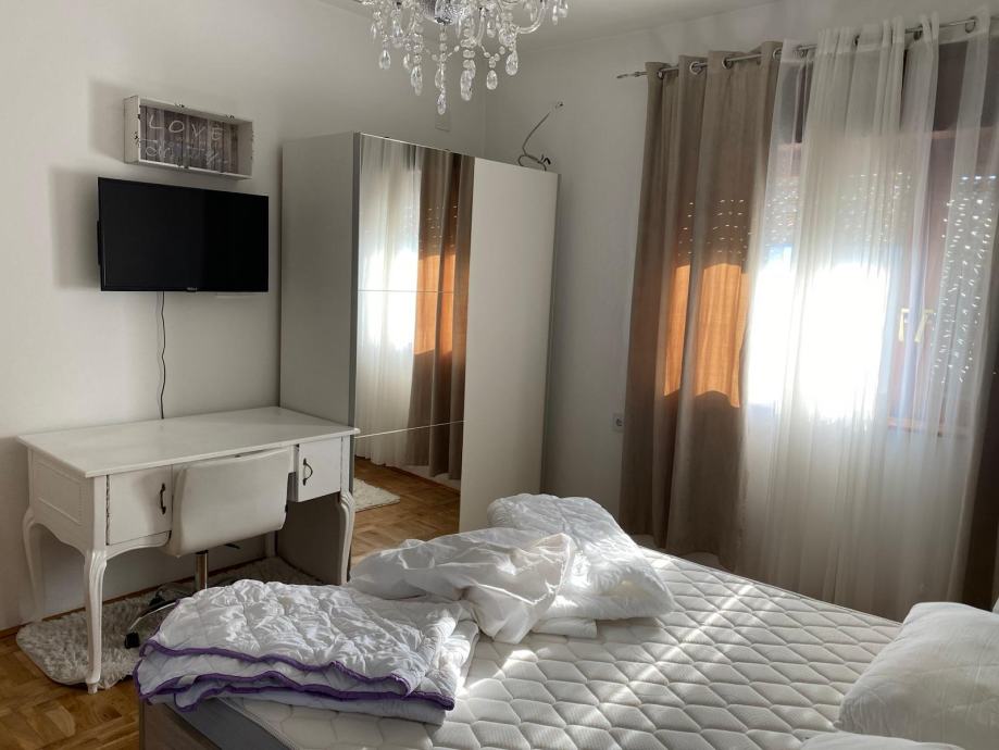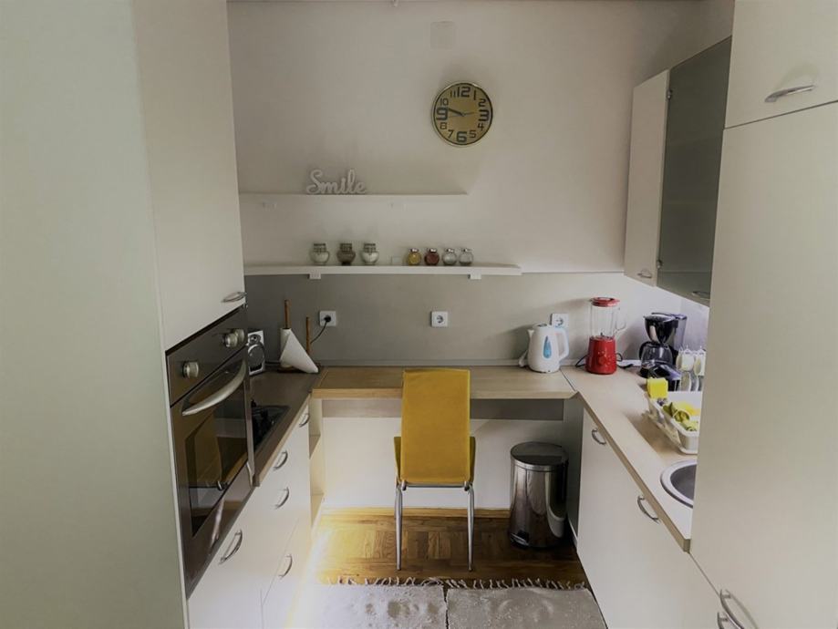 Stan je potpuno namješten sa perilicom i sušilicom rublja, higijenskim tušem, 3 x LCD TV, aparatom za kavu, kuhalom za vodu, usisavačem, peglom na paru, stalkom za glačanje, stalkom za sušenje, kantom za pranje poda, krpama za pranje itd.
