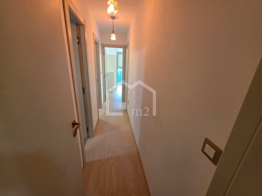 Stan upravo kompletno renoviran, te su sve vodovodne i strujne instalacije zamijenjene novim. Cijelom površinom stana je postavljen hrastov parket A klase, sve tri lođe su zatvorene Alu-stolarijom, a izlazi na njih sa ugrađenim velikim kliznim stijenkama. Ugrađena je nova Nolte kuhinja sa svim pripadajućim Bosh aparatima, walk-in tuš, novi kreveti i madraci, te je zamijenjen cijeli namještaj u stanu.